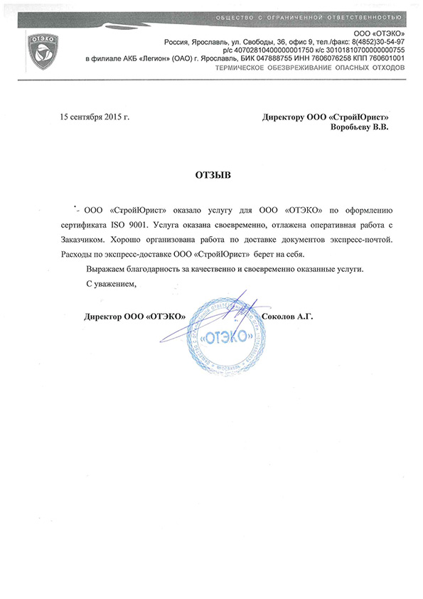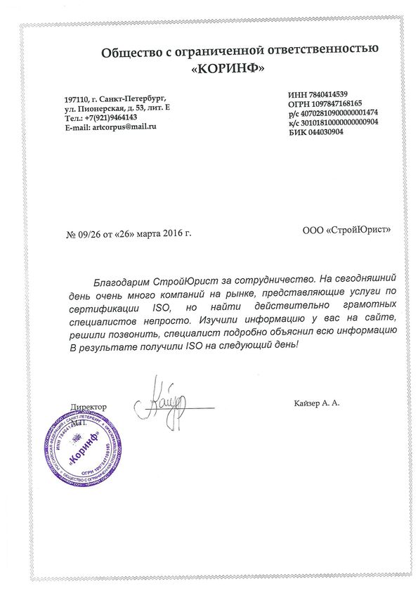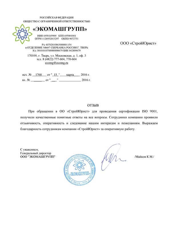 Отзывы клиентов "СтройЮрист" по ISO в Нягане