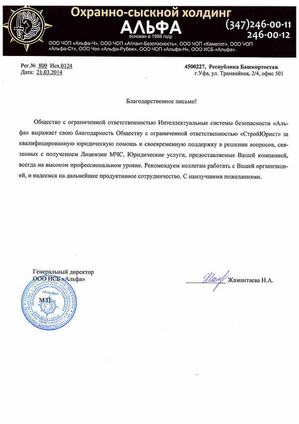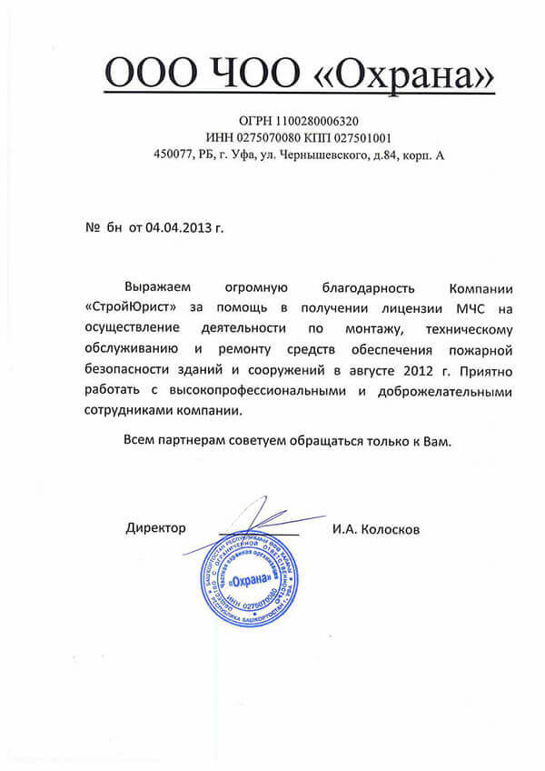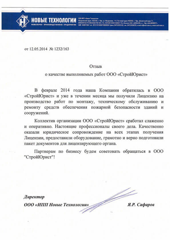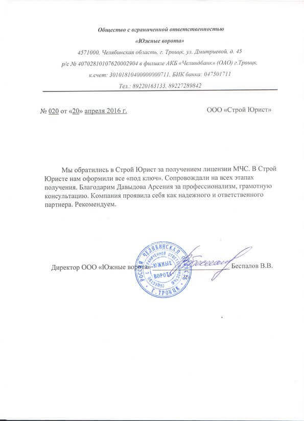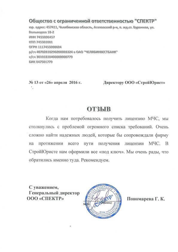 Отзывы клиентов "СтройЮрист" по лицензированию МЧС в Нягане