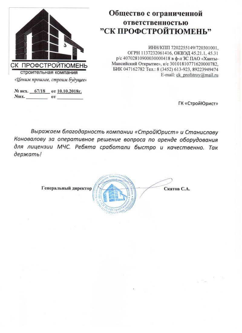 Отзывы клиентов "СтройЮрист" по лицензированию МЧС в Нягане