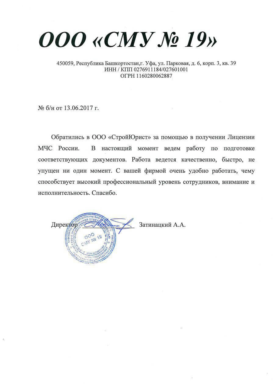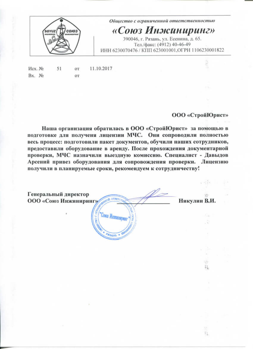 Отзывы клиентов "СтройЮрист" по лицензированию МЧС в Нягане