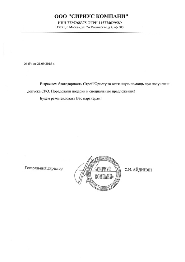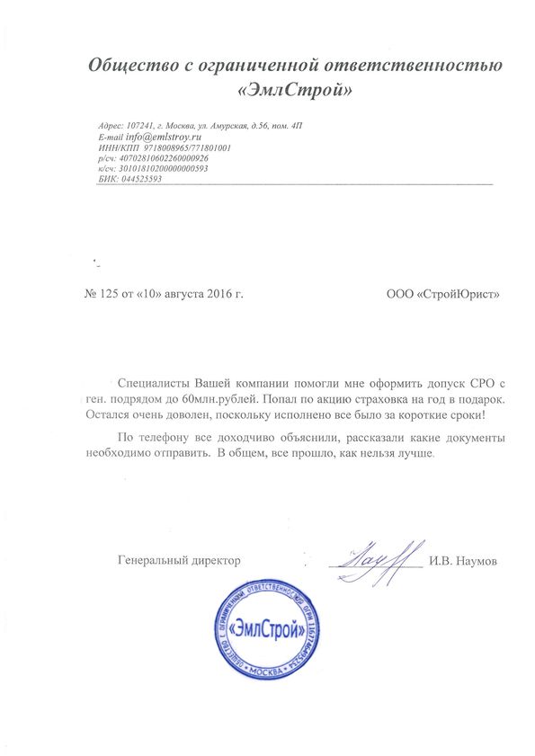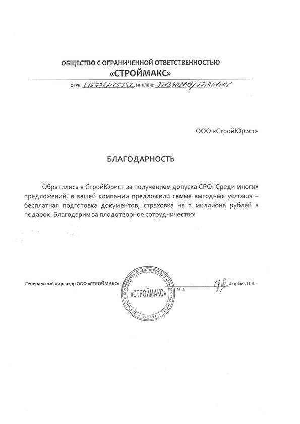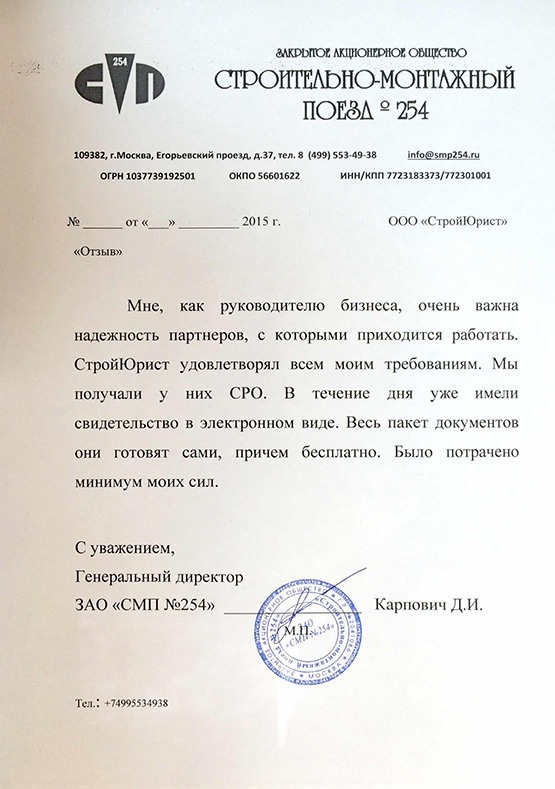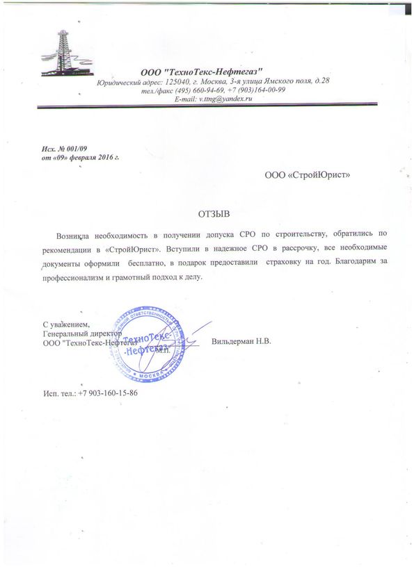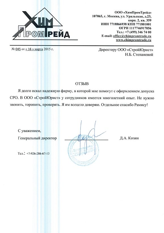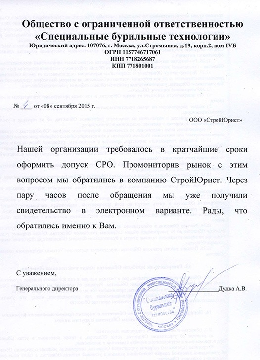 Отзывы клиентов "СтройЮрист" по вступлению в СРО в Нягане