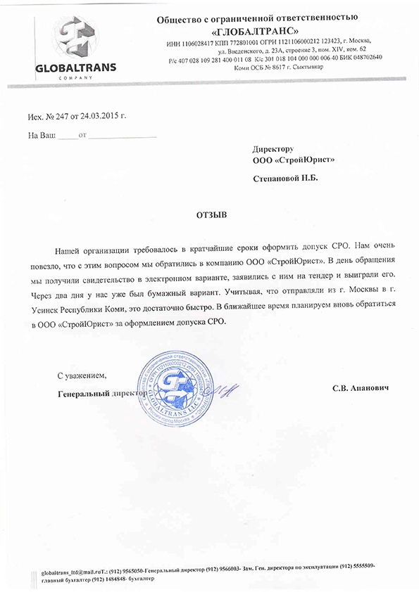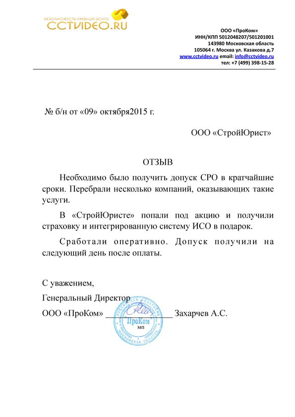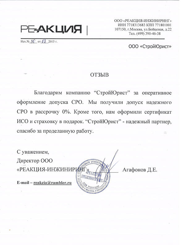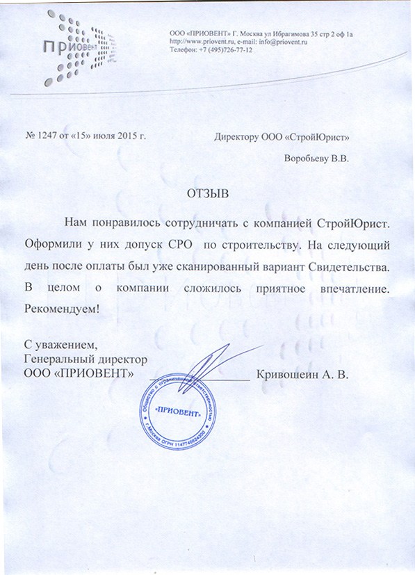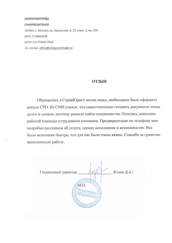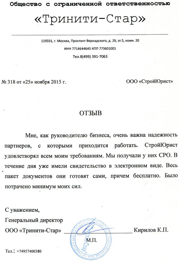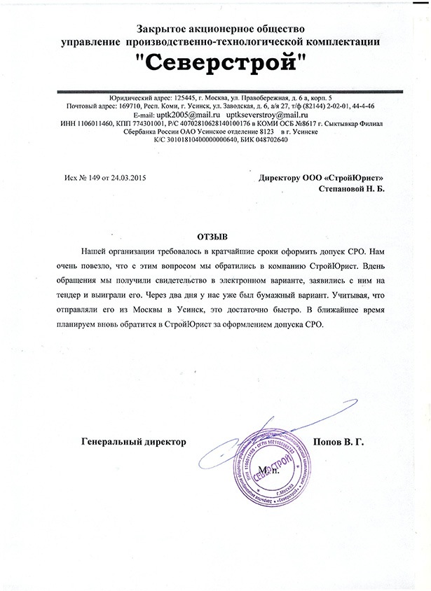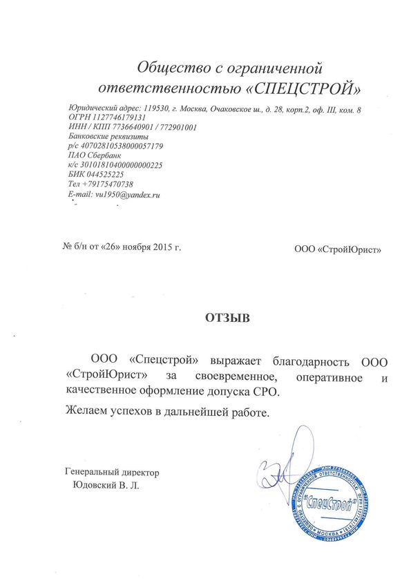 Отзывы клиентов "СтройЮрист" по вступлению в СРО в Нягане