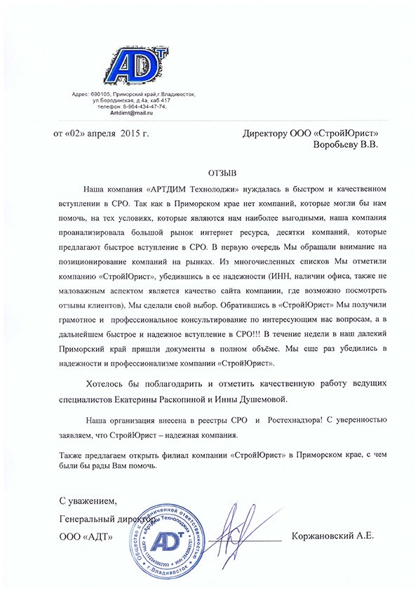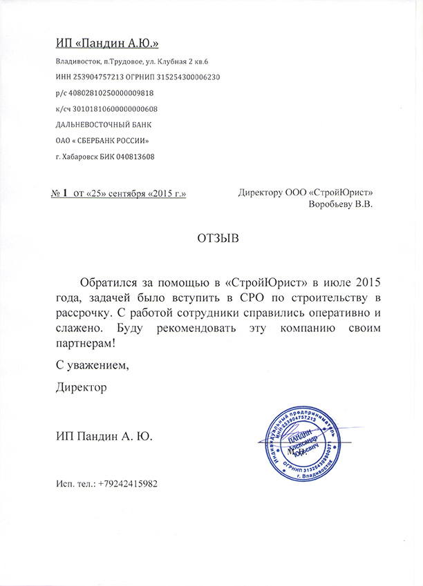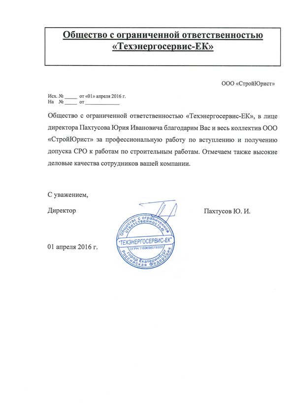 Отзывы клиентов "СтройЮрист" по вступлению в СРО в Нягане