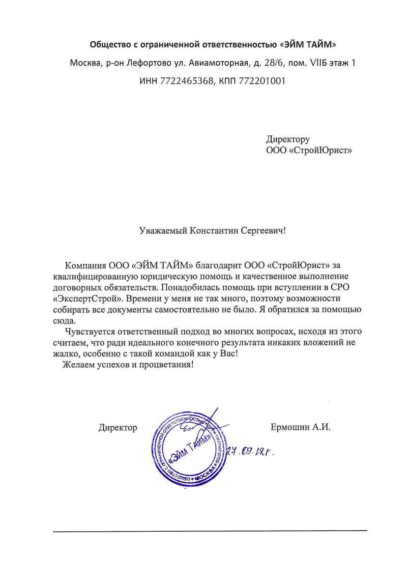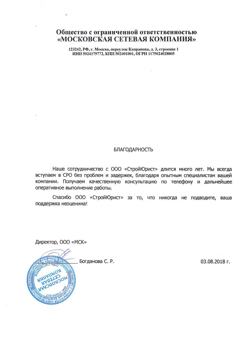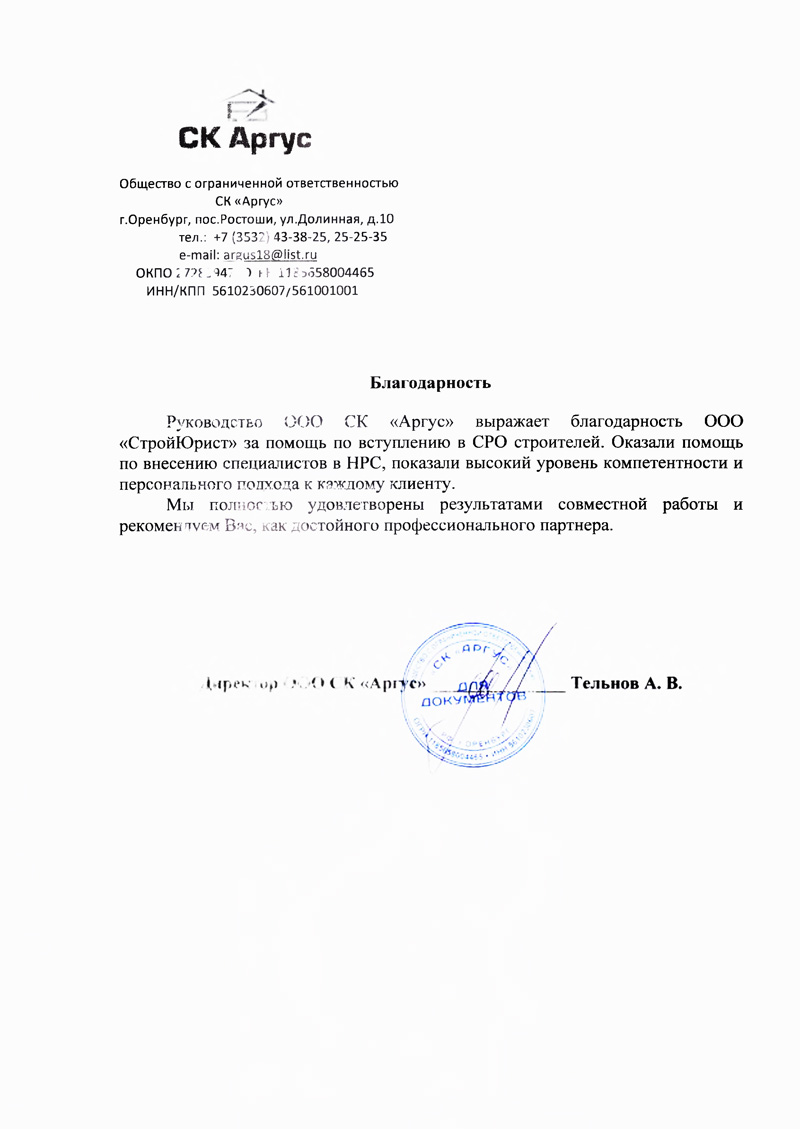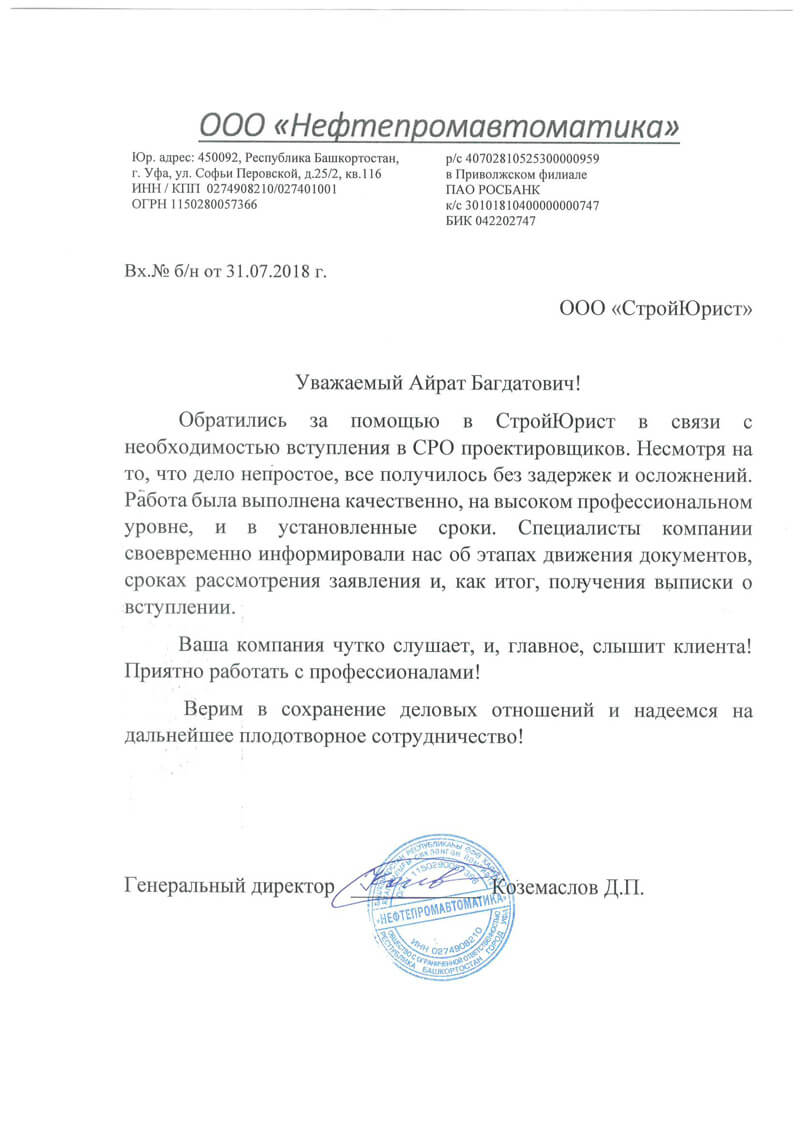 Отзывы клиентов "СтройЮрист" по вступлению в СРО в Нягане