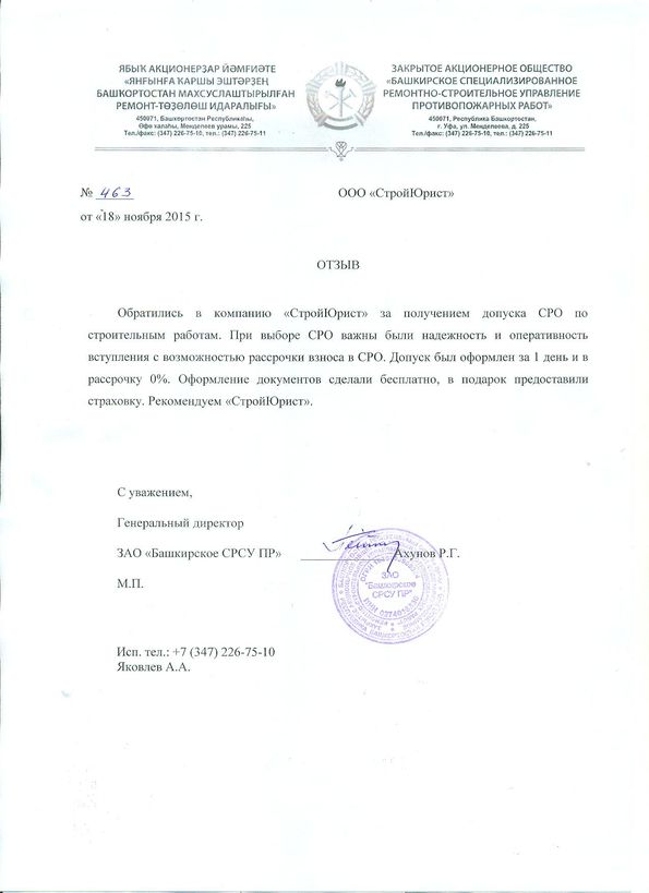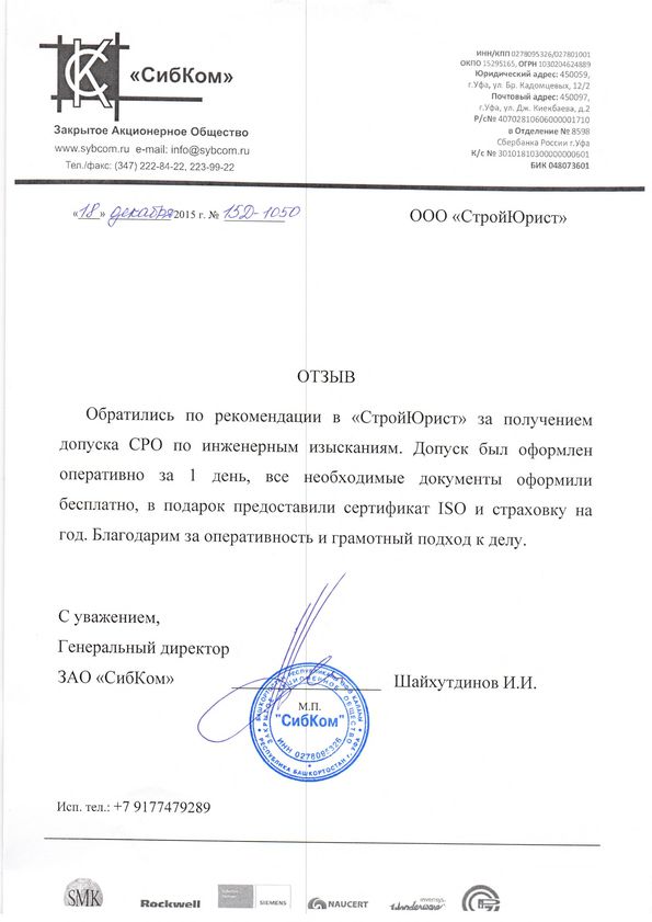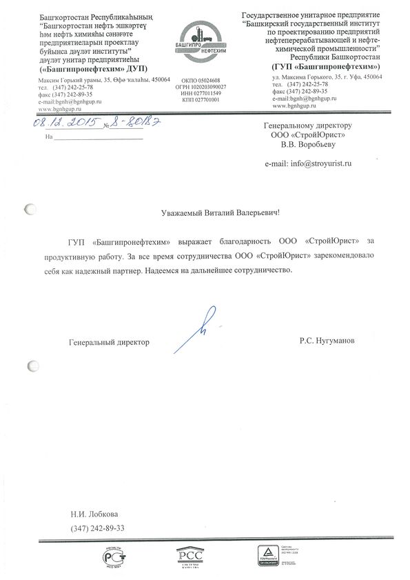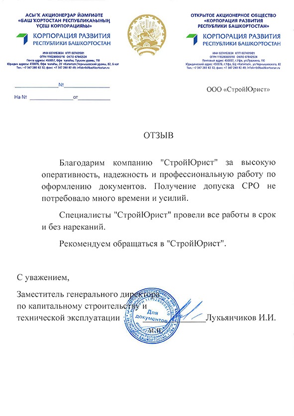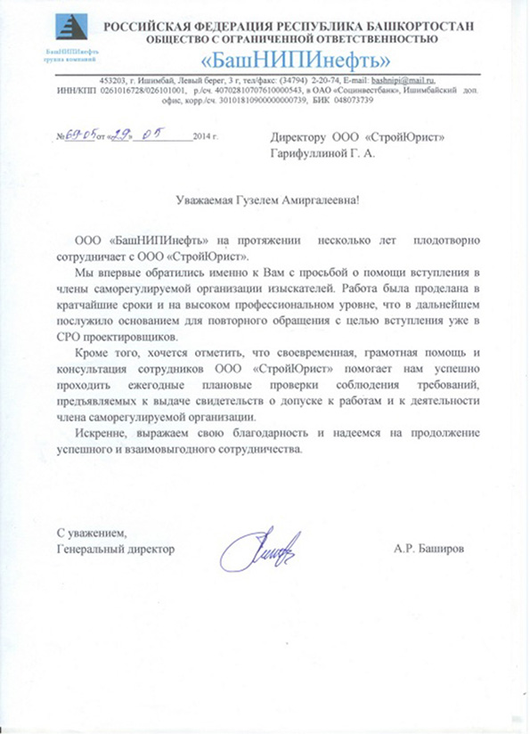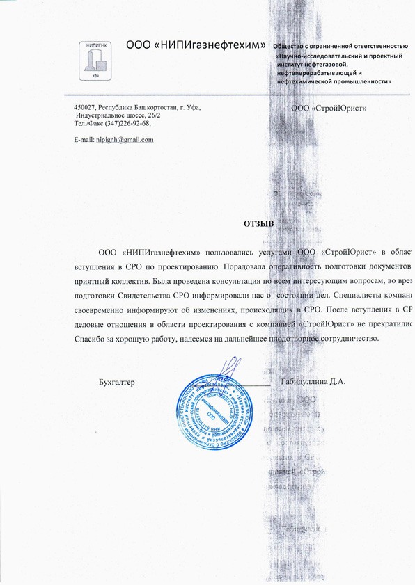 Отзывы клиентов "СтройЮрист" по вступлению в СРО в Нягане